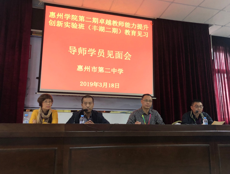 在基地学校组织的师生拜师见面会上,张院长对见习基地领导和指导教师的热情接待表示真挚感谢,同时就本次专业见习活动对同学们提出了相关要求,希望同学们在校外见习指导教师的指导下,不断学习,逐步提升教师技能。见习基地学校领导对“丰湖班”及历史系师生的到来表示热烈欢迎。他们表示,作为惠州学院教育见习基地,学校定会充分发挥见习基地的作用,为见习生提供良好的服务与指导,也会在校校协同育人平台中发挥积极主动的作用,同时安排卓越教师担任见习学生的指导教师;他们从听课、备课、试教、班主任管理等方面,对指导教师与见习生提出了明确的要求,希望“丰湖班”学子能积极参与教育教学工作,真切地感受教师教育教学的工作状态,体验教师职业的光荣,为成为新时代的园丁做好充分的准备。