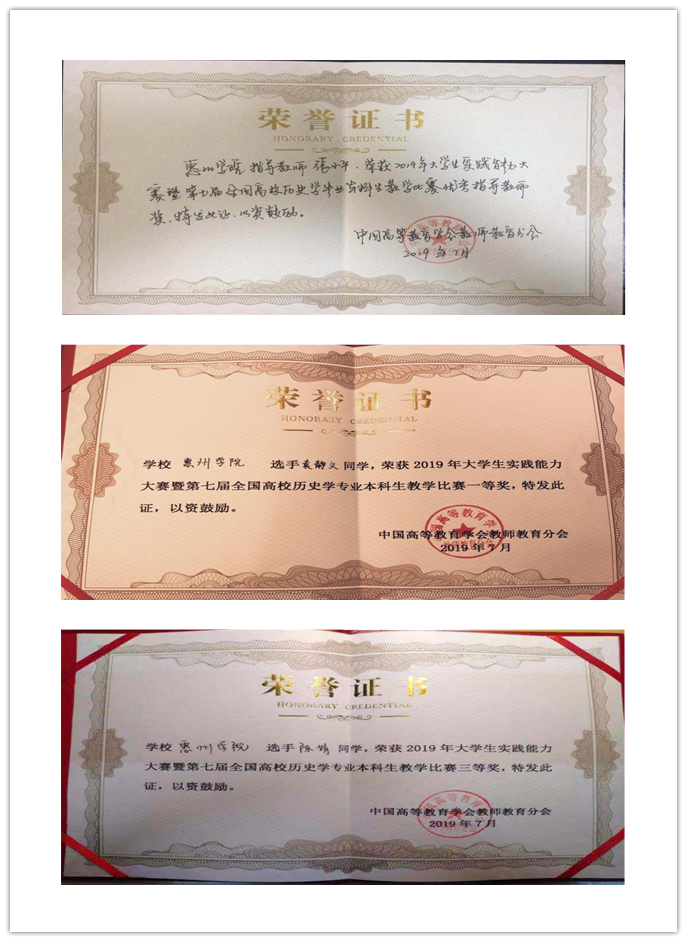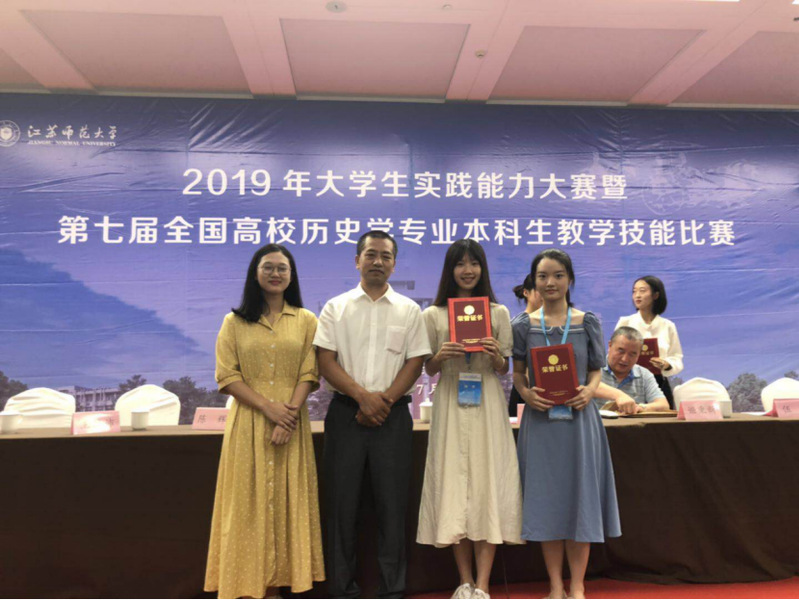 7月20-24日,在2019年大学生实践能力大赛暨第七届全国高校历史学专业本科生教学技能大赛中,政法学院代表队表现不凡,喜获佳绩。其中,2017级历史学袁静文同学获得一等奖,2018级陈婧同学获得三等奖,张小平老师获得优秀指导教师奖。