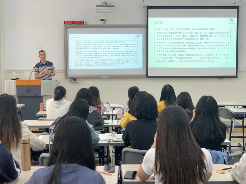 为更深入了解妇女社会工作理论在实践中的应用,2019年11月1日,政法学院社会工作系开展了《妇女社会工作》嵌入式课程。针对扶贫与农村妇女服务的主题,在课堂中由惠州市惠民社会工作服务中心副总干事、督导刘文川为2017社工班的同学分享了《小乡村,大女人——妇女参与乡村振兴工作探索》的精彩内容。