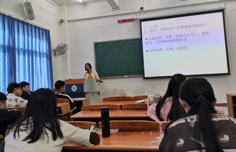 郑老师以自己研究的“新中国成立以来惠东畲汉婚姻关系的变迁”为例,用自己的亲身经历,特别提出了三点意见:一是要基于当前学术界在该方向的研究成果,找到自己感兴趣又有现实价值的选题;二是结合实际的研究方向和内容采取灵活的方法;三是从收集来的材料中提炼观点,“大胆假设、小心求证”,让数据说话,用事实佐证、文献论证,多种材料共同服务于提炼的观点。