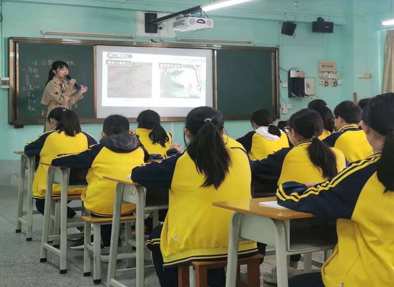 本次同课异构的教学内容为七年级上册第十八课《东晋南朝时期江南地区的开发》,惠州市二中段国玉老师、我院历史系袁静文同学讲课,二中七年级学生听课,历史系2017级学生观摩。袁静文同学努力将所学的教育理论和专业知识运用到真实的课堂中,善于激发学生学习兴趣,整堂课活泼流畅。