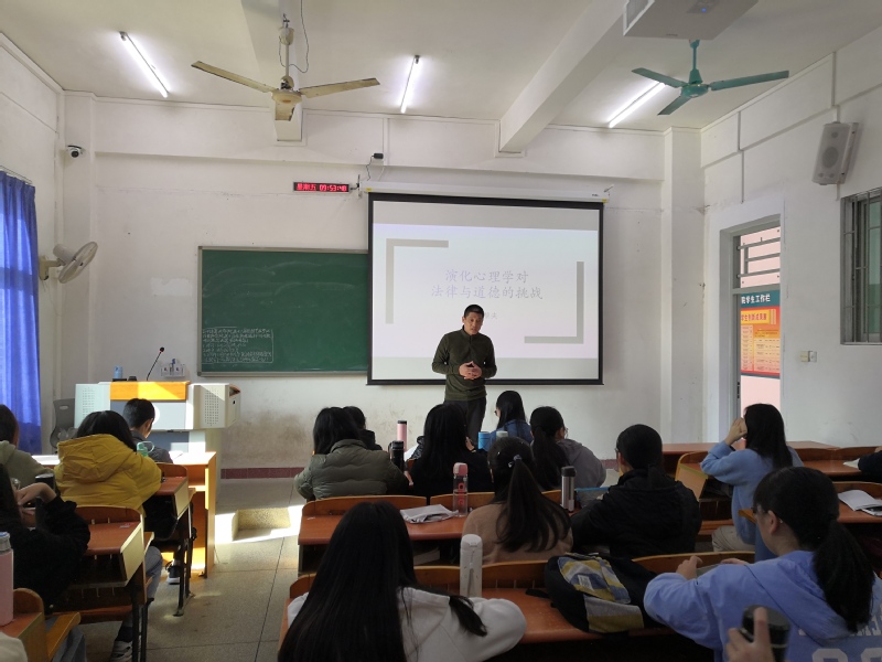 12月27日上午,我院历史系邀请常州大学张黎夫教授在田家炳大楼214课室开展学术讲座,主题为《演化心理学对法律与道德的挑战》,我院历史系万齐洲教授和2018级历史学2班学生聆听了讲座。