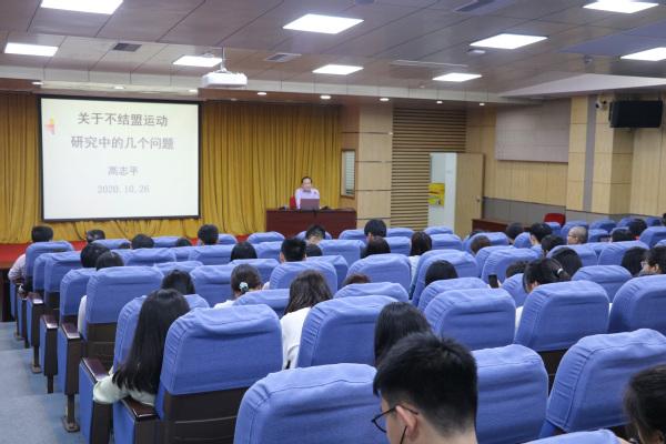 高志平教授首先总述了这次讲学的六个主要内容,并以当前社会的热点问题“阿亚冲突”作为切入点,对不结盟运动做了简要概括,使学生对这一新型概念有了初步的认识。