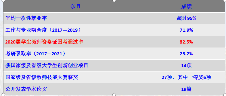 2020年起,本专业与华南师范大学联合培养教育硕士,现有硕士生导师3人,在读研究生3人。现有在校生347人,已毕业全日制本科生806人。本专业生师比为16.52∶1。