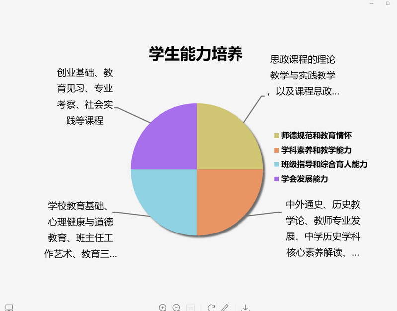 本专业重视师范生的教师基本技能、“三字一话”及师德养成的训练,并制定了具体实施办法。大一至大三的学生坚持抄读《四库全书总目提要》《国史大纲》等史学经典,坚持板书训练。专业建设有完整的师范生教学技能训练体系,组织学生参加和观摩国家、广东省和校院各级教学技能大赛,学生参与度达80%以上。