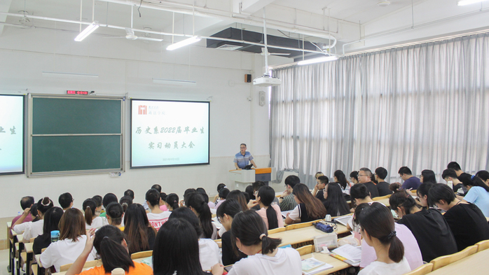 9月10日上午,政法学院历史系于旭日科技大楼B座106课室召开了2022届实习生动员大会。政法学院副院长张小平、历史系教师、各实习学校领导、18级全体历史系学生参加了本次会议,会议由曾平辉老师主持。