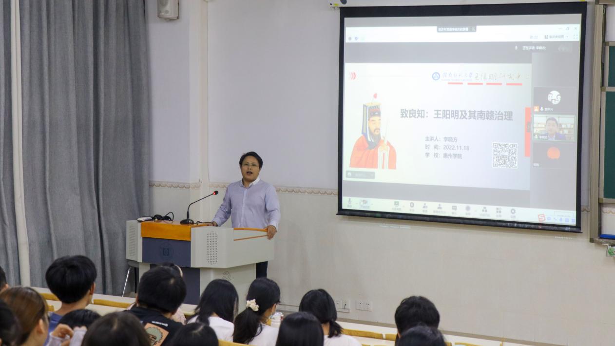 11月18日晚,政法学院历史学专业2022年系列学术讲座正式开始。赣南师范大学历史文化学院院长李晓方受邀首讲,主题为“致良知:王阳明及其赣南治理”,讲座由政法学院副院长郭平兴博士主持,历史学专业部分同学集中观看。