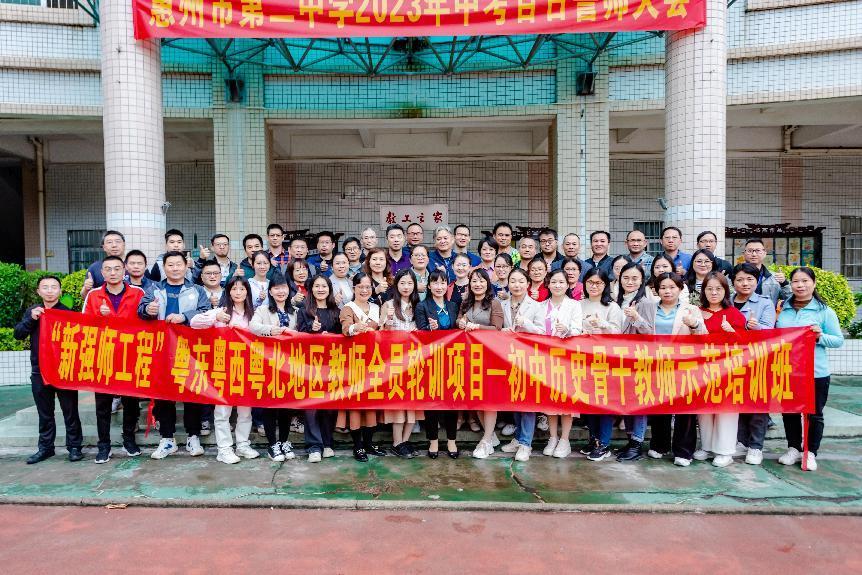 3月31号下午,惠州学院政法学院在惠州市第二中学科教楼二楼多功能室举行广东省“新强师工程”粤东粤西粤北地区教师全员轮训项目——初中历史骨干教师示范培训班结业典礼。惠州市第二中学党总支副书记李翠琼,惠州市第二中学教务处主任徐元治,惠州市第五中学历史备课组长郑志玥,惠州学院政法学院党委书记李实,班主任陈会容,惠州市第二中学教师代表,培训班全体学员参加此次结业典礼。结业典礼由惠州市第二中学副校长陈继长主持。