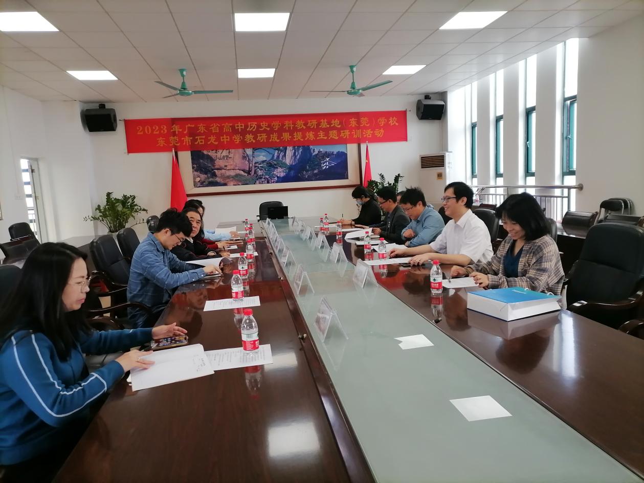 会上,石龙中学历史学科教研组组长罗嘉辉老师对石龙中学历史科组及其近年来所做的相关教研做了详细的介绍。接着,我院教师郭平兴博士,针对本次活动要求,结合石龙中学历史科组的情况畅谈了自己的看法。充分肯定石龙中学在过去的日子里所做的努力,取得的优秀成绩。并从校本教研、课堂教学、课题申报、论文撰写等方面谈了自己的看法,给出中肯的建议。最后东莞市石龙中学教务处副主任刘石养老师对本次活动进行总结。刘主任充分肯定了历史科组近年以来在“品质课堂”建设和学校“敏行”教育品牌打造过程中取得的成绩和做出的贡献。