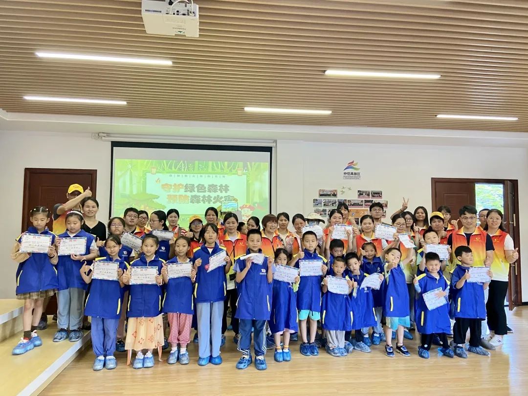 捡跑活动结束后,惠州学院社会工作系学生组织家长和孩子们于仲恺高新区党群服务中心群团之家开展“守护绿色森林,预防森林火灾”主题活动。