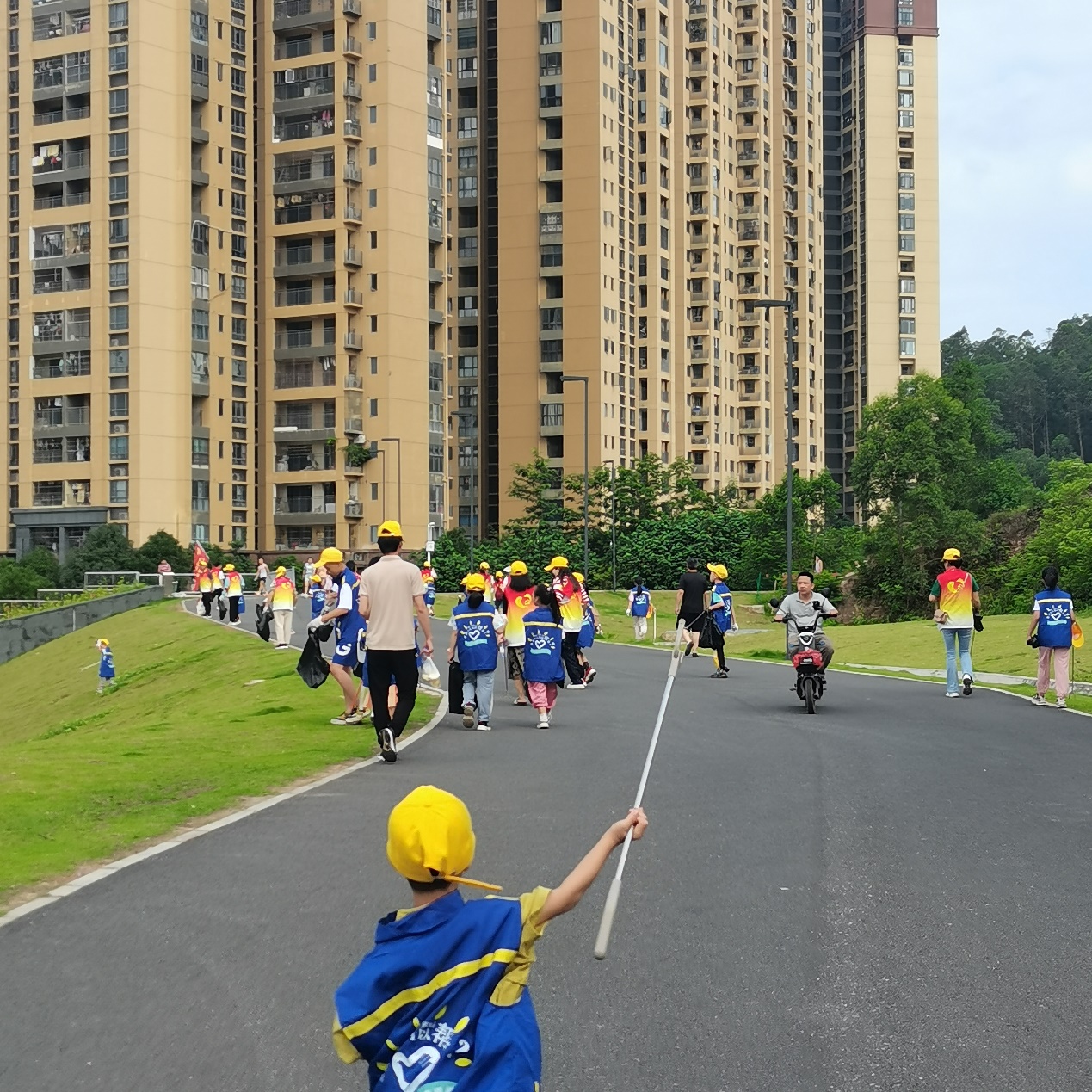 活动伊始,仲恺高新区党群志愿服务队负责人,组织家长、孩子们为捡跑活动做好充足准备。不同于一般的捡跑活动,负责人表示本次活动以家庭为单位,捡跑活动结束后,会对捡拾的垃圾进行称重,垃圾量最重的前三名会有额外的奖励。热身后,在中心工作人员和志愿者的带领下,大朋友、小朋友们沿着仲恺公园的主干道方向,一边慢跑,一边仔细搜寻沿途的垃圾,活动现场热闹非凡。参加捡跑活动的学生表示小朋友们朝气蓬勃、活力十足,深深感染着自己也积极融入捡跑的队伍中;同时也学习到了组织开展相关活动需要注意的事项,如要在队伍前部、中部和后部都安排负责人维持秩序,可以很好的保证活动顺利有序的开展;活动可以设置一些趣味的环节,提高参与者的积极性,提升服务活动完成的质量。