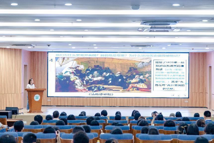 学员代表柯媚娟和黄诗每分别以“美国独立战争”和“青铜器与甲骨文”为主题作示范课展示,均详述了自己的设课思路和备课想法,讲解如何用视频和图片吸引学生注意力,锻炼学生提取信息以及语言逻辑表达能力,同时说明了要适当提出课程相关问题,引导学生思考。两位学员的展示均表现得十分精彩,在场学生表示收获颇丰,赢得了一致好评。最后,领导代表为优秀学员颁奖鼓励,全体领导嘉宾和学员合影留念。