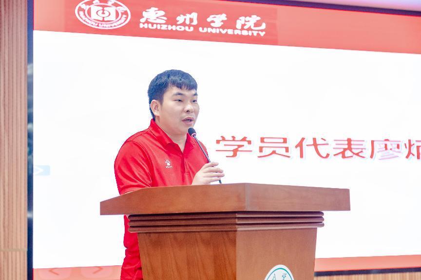 罗丹航上台发言,他首先对惠州学院的信任、老师们的支持表示万分感谢,强调我校组织的此次培训机会为各教师提供了相互学习、交流和提升的机会,让老师们能够在真实的情境中亲自体验程序流程。随后说明了专家讲座、听评课例分析、研讨、同课异构、实践考察等方式,有效促进了跟岗老师的培训工作,各教师展现出极高的热情和专注,不停地在教育实践中积极探索,勇于创新,做到了真正地学以致用。