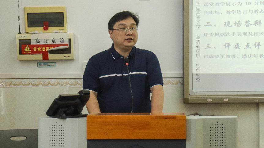 评委成晓军教授既肯定了青年教师们的优秀表现,又从课堂表现、教学方法、教学形式等多方面对他们针对性地提出了更高的要求和可行的建议。潘庆年教授则从长远的眼光对赛程进行了分析,表达了对青年教师们未来表现的展望与期待。