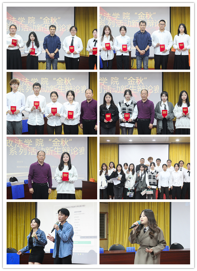 11月20日晚,政法学院第三十四届金秋系列活动“北方北杯”新生辩论赛决赛在图书馆报告厅隆重举行。我院党总支副书记罗传宝,辅导员罗薇、许华本老师,新生班主任代表以及参赛学生参加了本次活动。