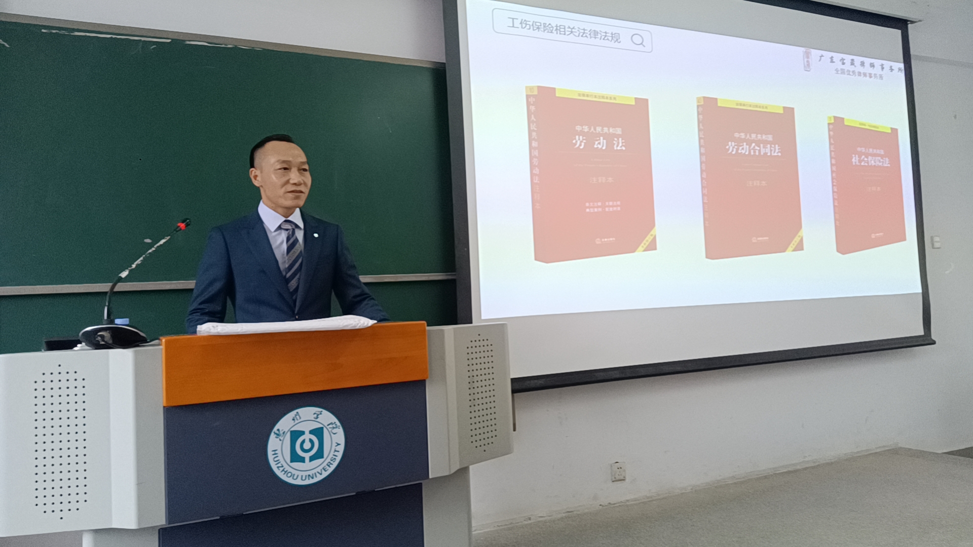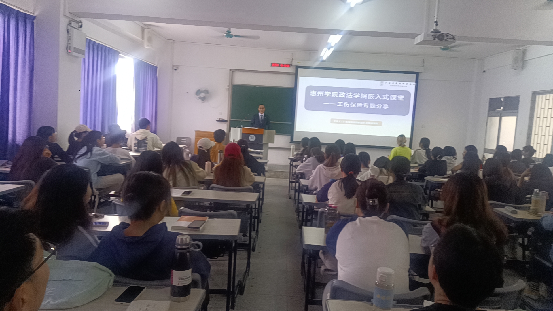 为了进一步夯实社会工作专业学生的法律意识、增强法律实践能力,2023年12月12日下午,惠州学院政法学院于旭日大楼505课室开展了一场别开生面的关于“工伤保险专题分享”嵌入式课程。我们邀请了广东宝晟律师事务所刘家峰律师为学生们讲解工伤保险的相关知识。《劳动与社会保障法学》授课老师谢文俊主持,21级社会工作1班及2班全体学生参与学习。