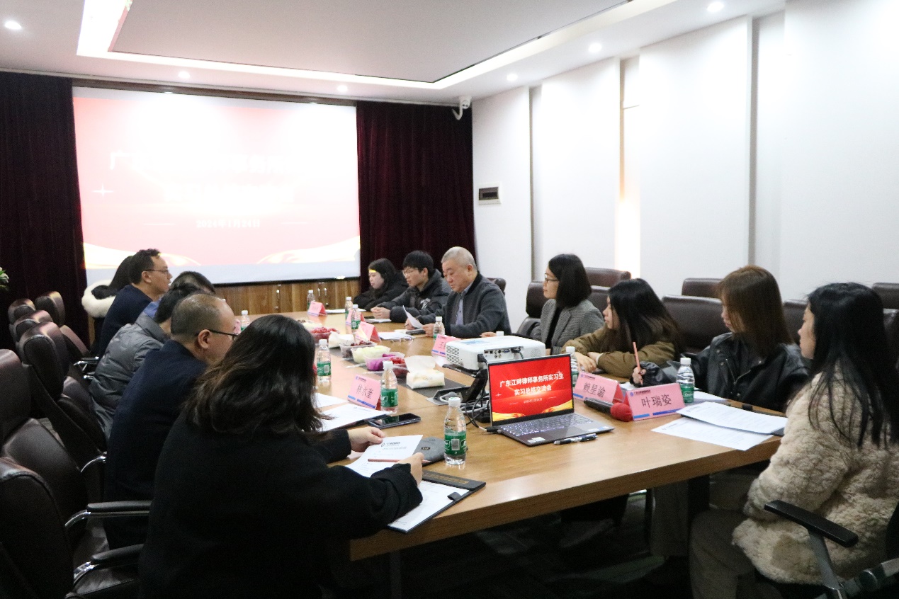 座谈会上,广东江畔律师事务所名誉主任曾越华律师介绍了江畔所的行业发展概况,以及实习生的工作情况,并建议在人才培养方面进一步提升语言沟通、辩证思考、主动发现问题、增强职业敏感性、公文写作等方面的能力。