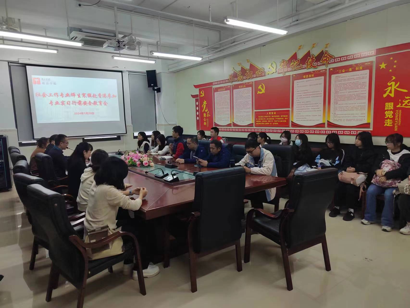 1月21日上午,政法学院社会工作系学生在旭日科技大楼B座1608会议室召开寒假赴香港实习行前安全教育动员会。政法学院党总支书记曾蔚阳、副院长周巍、赴香港实习的教师和学生参加了动员会。本次会议由周巍主持。