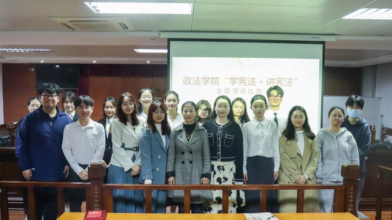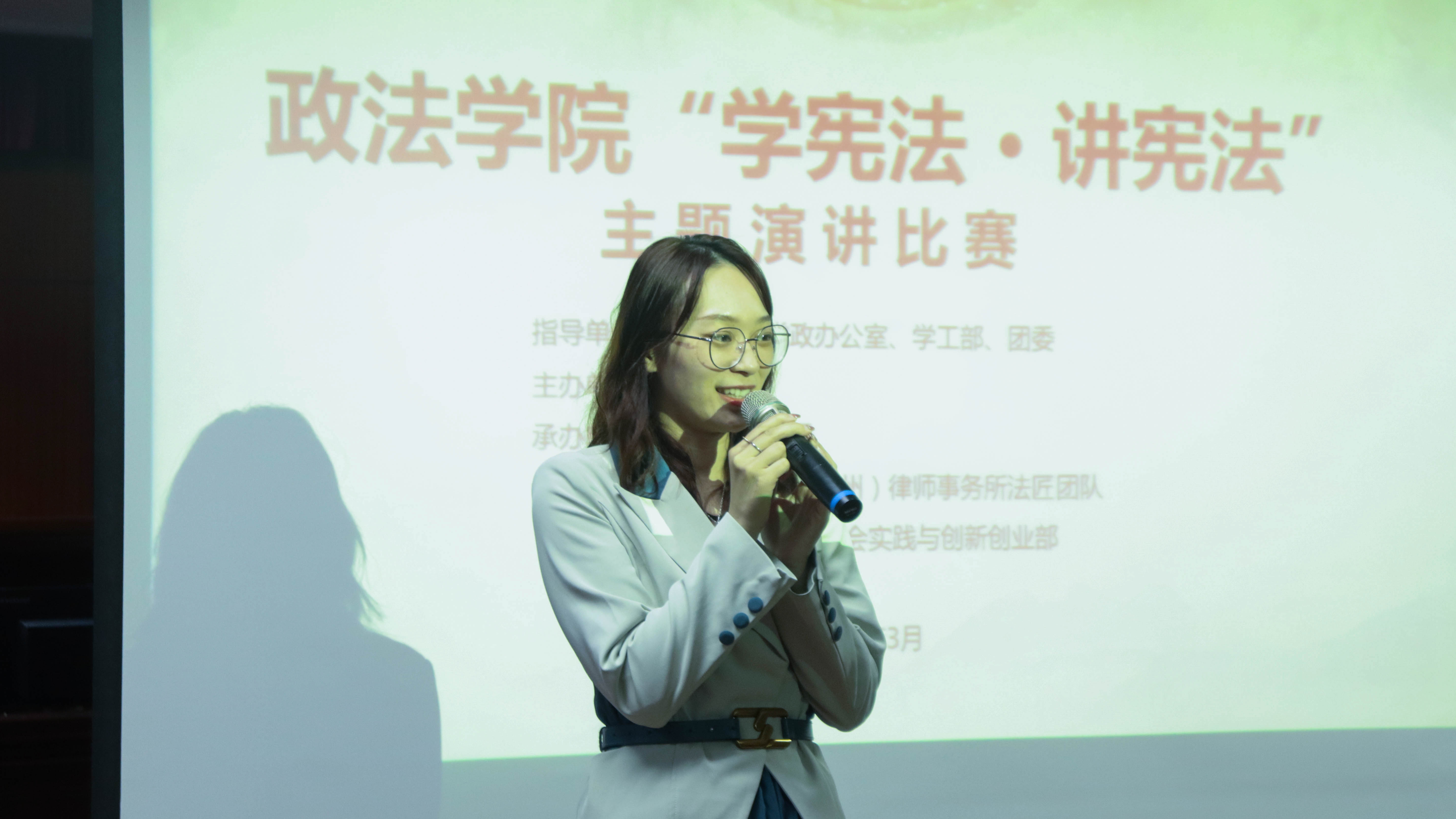 2024年3月15日晚,政法学院2024年“学宪法 讲宪法”主题演讲决赛在模拟法庭教室举行。北京市盈科(惠州)律师事务所陈雅婷律师、邓婉婷律师、政法学院教工第一党支部书记陈新华、政法学院团委书记陈曦、政法学院法律系张俊雅博士以及参赛选手、学生代表参加了活动。