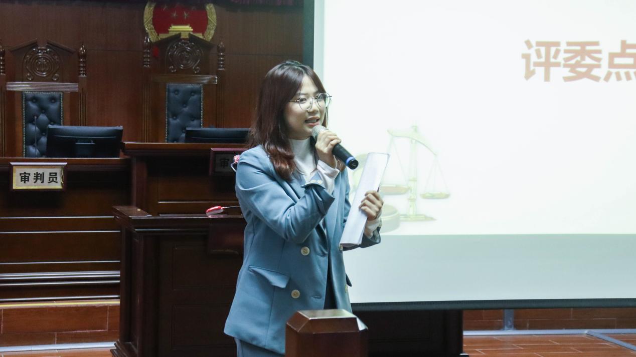 陈新华开场致词。她提到,宪法演讲活动目的在于传播宪法,也是学生培养敢说、会辩、善于思考能力的重要实践活动,她鼓励参赛学生无论结果如何,都要展现出自己的风采,展现出“长江后浪推前浪”的气势。邓婉婷也在致词中表示了对精彩表现的期待。