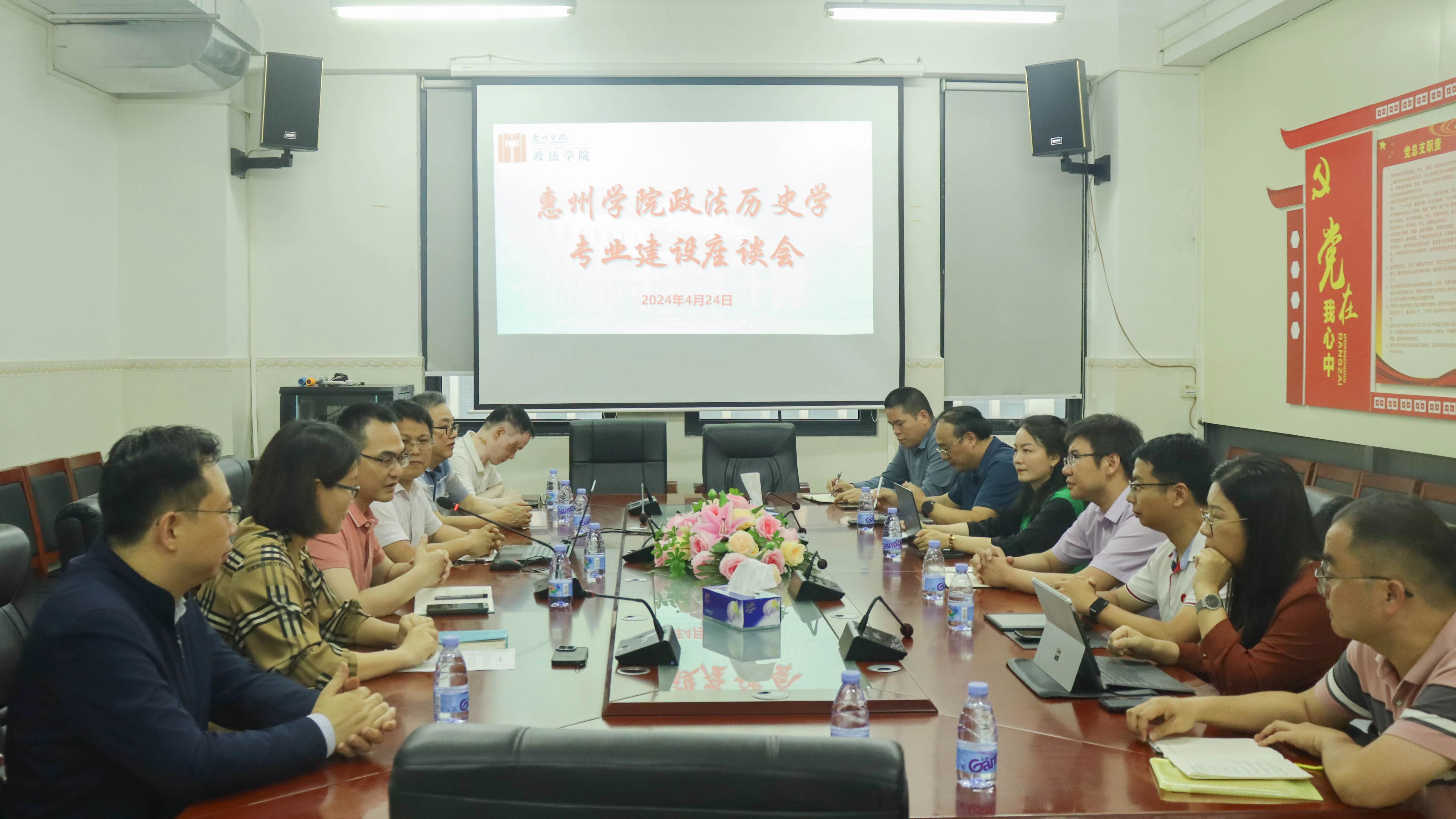 为进一步提升政法学院教育教学水平,加强校际间的交流合作及资源共享,政法学院于4月24日下午在旭日科技大楼B座1608会议室开展惠州学院政法学院历史学专业建设座谈会。增城区历史教研员、正高级中学历史教师陈洪义老师、惠州市中学历史教研员郭辉、丁浩老师、惠州一中李晨华、黄华琦、谭京老师,惠阳五中何博老师参加,政法学院党总支书记曾蔚阳,政法学院副院长王秋花,历史系主任曾平辉老师,徐旭阳教授、郭平兴、张熊老师出席。