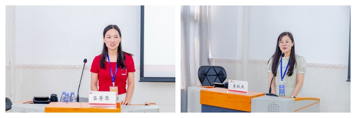 随后,学员代表吕芳琴老师和李秋燕老师进行发言,对本次培训活动的承办方和各级领导表示感谢,并表示学员们定会坚守内心最初的梦想,珍惜本次培训机会,积极思考、主动探讨,做好“人类灵魂的工程师”。
