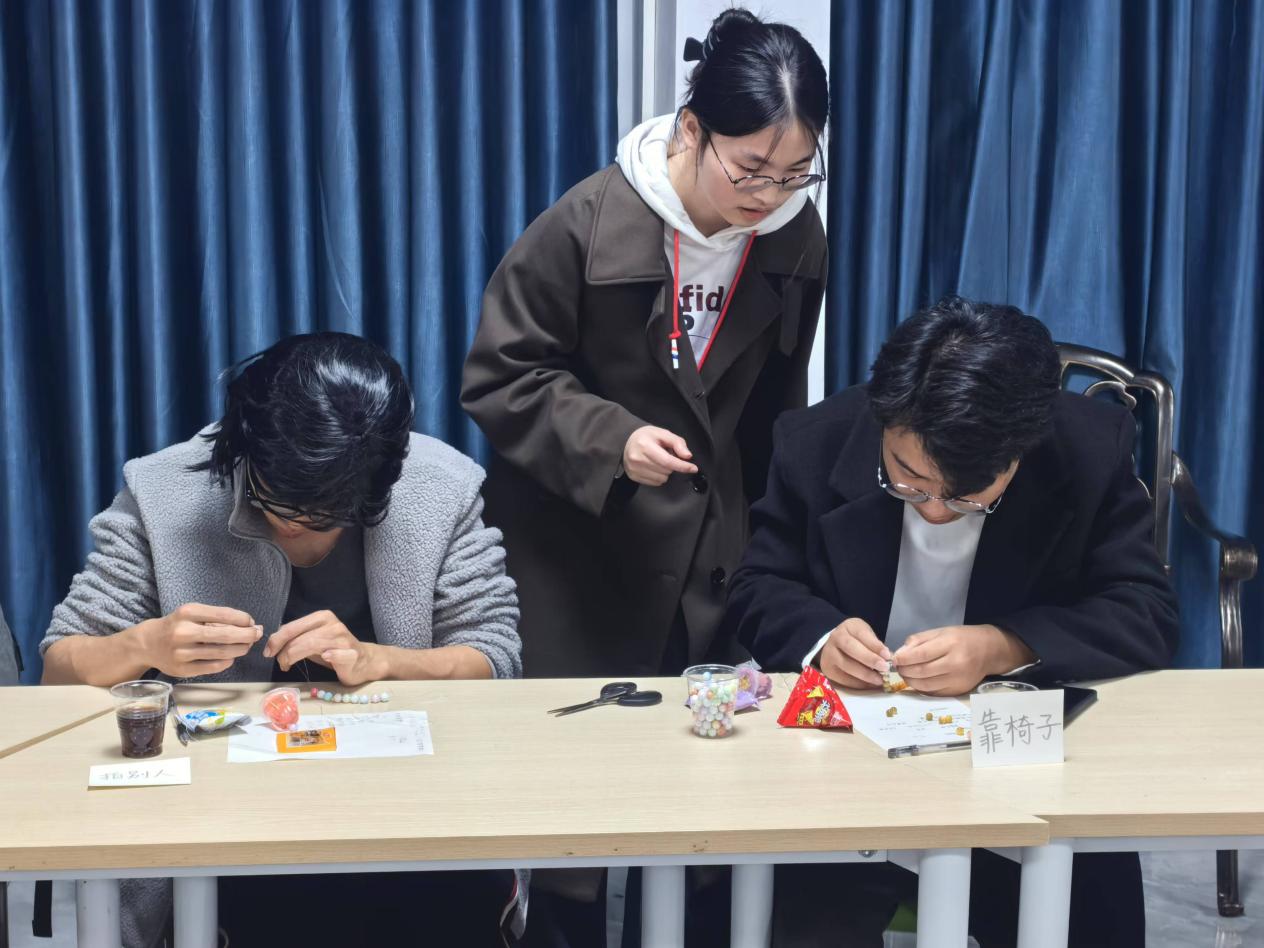 随后,就到了我们的重头戏——串珠环节!“串珠老师”详细且耐心地为大家讲解了串珠的基本技巧和方法,从如何巧妙地穿针引线,到怎样灵活地组合珠子,再到色彩搭配。参与活动的同学仔细聆听串珠的讲解并开始了自由发挥地串珠之旅。