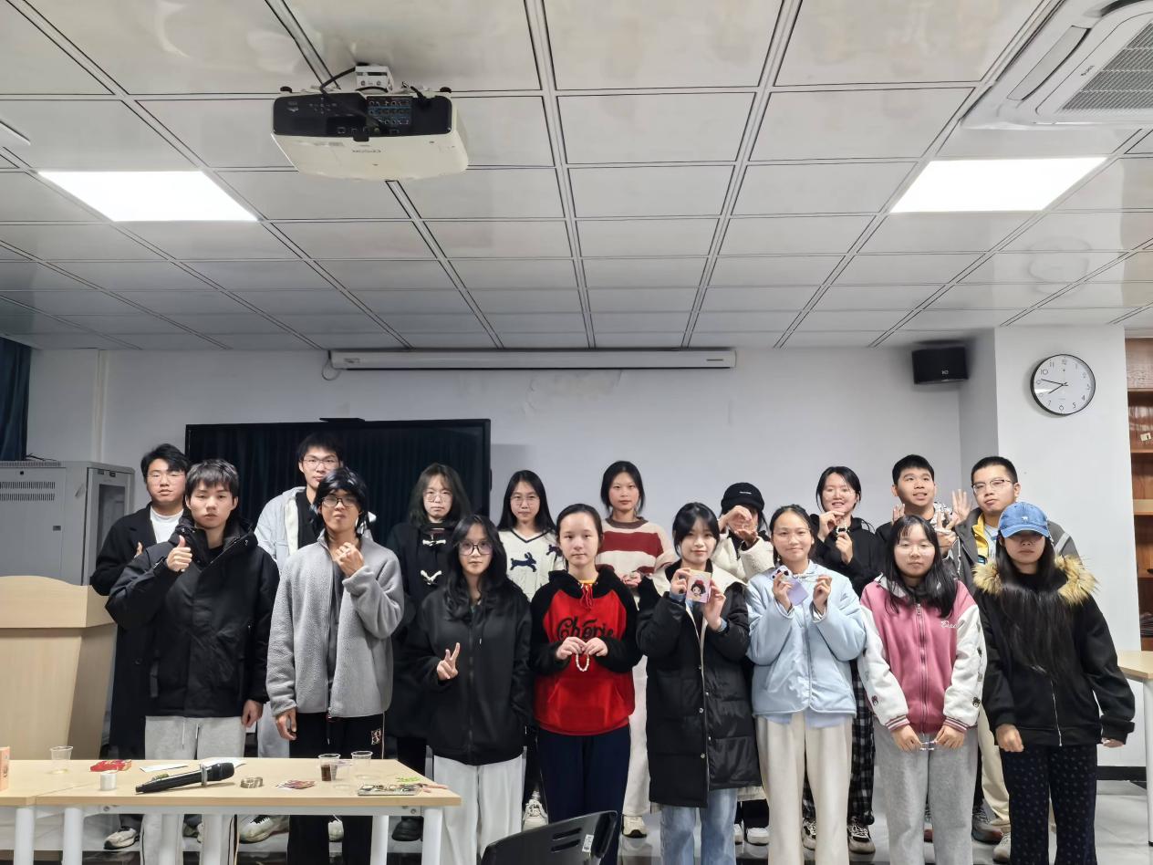 在接近两个小时的活动结束后,大家合照留念。依然有超过一半的同学表示意犹未尽,想要继续进行手工活动,于是我们工作人员为这部分同学提供了更长的创作时间,大概1小时之后,同学们才依依不舍地离开活动现场,并且纷纷称赞,此次活动简单却不乏趣味,是一次创意新颖的放松与交流的机会。