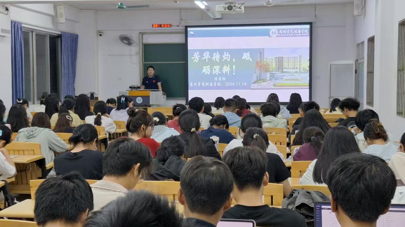 陈清松围绕“本科阶段规划”,“自我提升”,“求职方向”三个方面展开。他从本科阶段的求学经历出发,对本科学习的各个阶段进行了分析,并提出了相关建议,他通过亲身经历,讲述阅读在本科阶段的重要性,勉励同学们要多读书,读好书,不断提升师范生专业素质。最后,他通过求职的经历鼓励同学们要明确目标,做好职业生涯规划,不断提升学习能力。