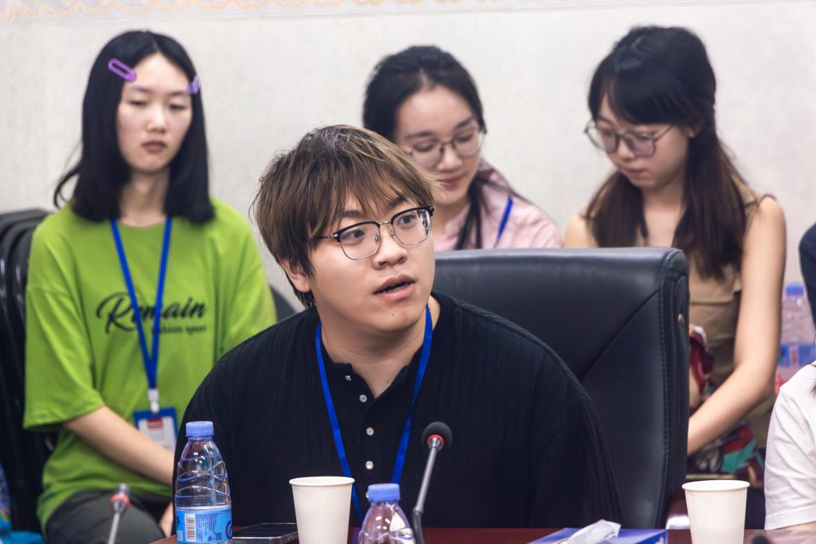 随后,陈曦围绕政法学院团学工作展开介绍。他从团学组织规范化建设情况、以“模拟法庭友谊赛”“师范生教学技能大赛”等活动为核心的第二课堂实践成效,以及政法学院“金秋”系列品牌活动的特色亮点三个维度,展示了学院在丰富学生课余生活、提升学生专业实践能力方面的举措与成果。