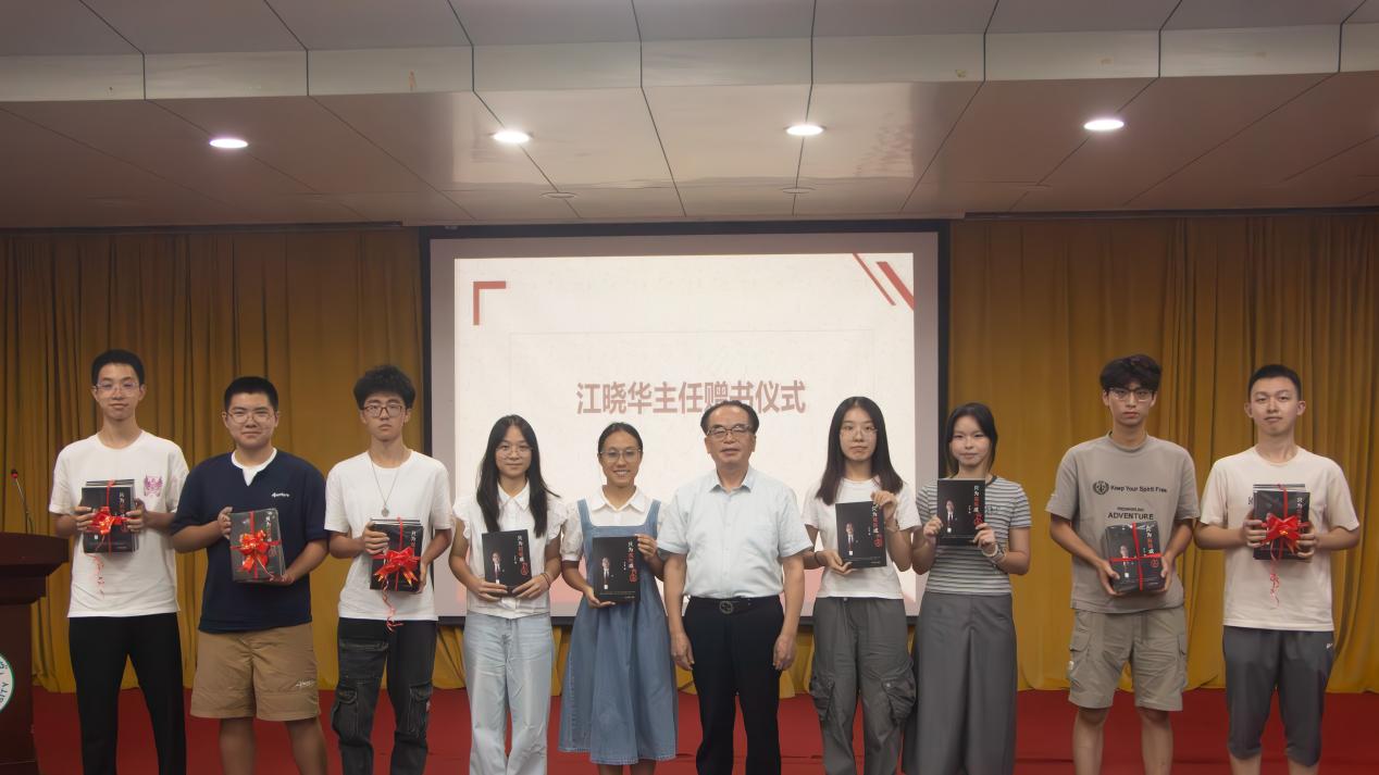 江晓华律师以“学法以明道,用法以立身”为题,分享了其深耕行业四十余年的心得。他从亲历者视角,回顾了新中国律师制度的发展历程,分析了律师行业当下的机遇与挑战。他强调,法律绝非束之高阁的理论,其生命在于运用,价值在于实践。他寄语新生要学好法律、捍卫法治尊严,让法治之光照进社会每个角落,回应伟大时代的召唤。江律师还向新生们捐赠了两百册书籍《只为规矩成方圆》。