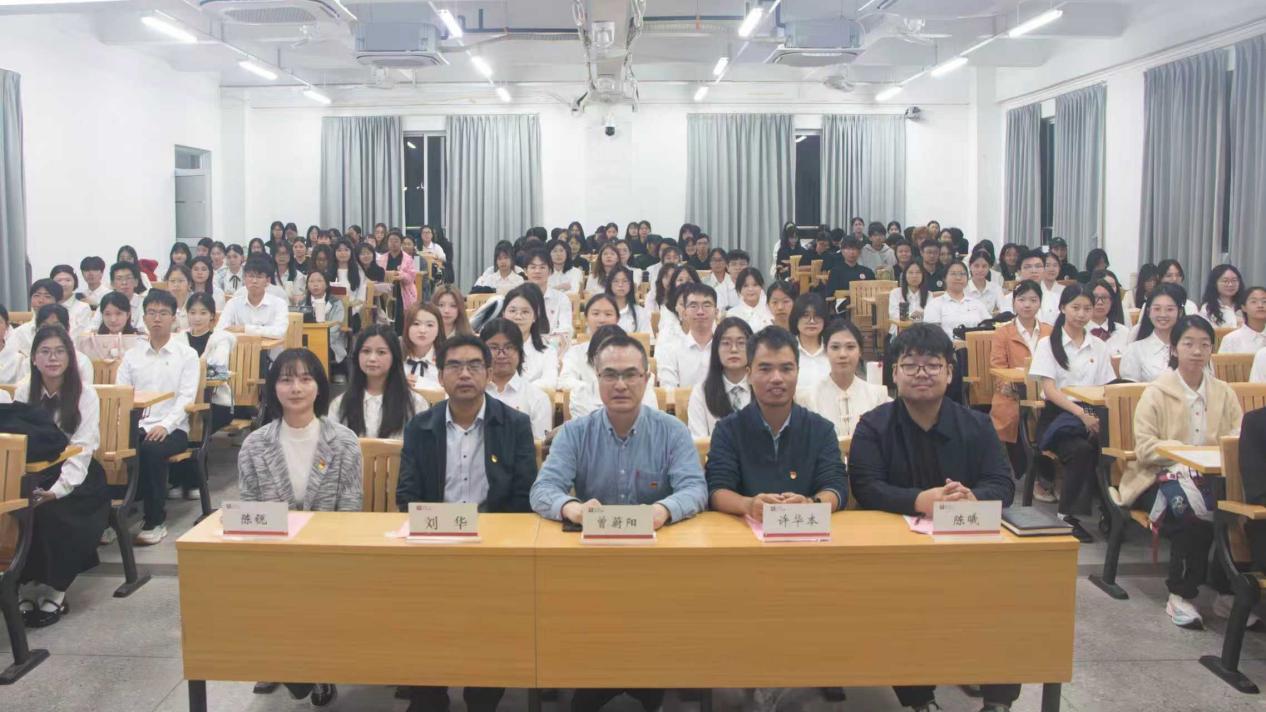 2025年10月24日晚,政法学院2025-2026学年团学组织成立大会暨第六期“青马学堂”培训班结业仪式在旭日教学大楼107教室顺利举行。政法学院党委书记曾蔚阳、副书记刘华,团委书记陈曦、副书记许华本,辅导员陈锐,第六期“青马学堂”培训班全体学员,以及团委学生会、青年志愿分会学生干部共同出席本次活动。
