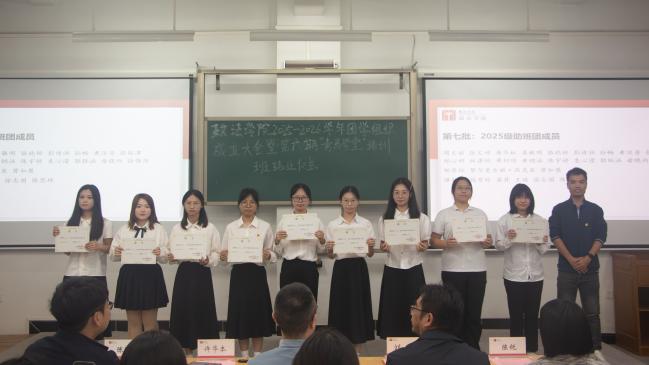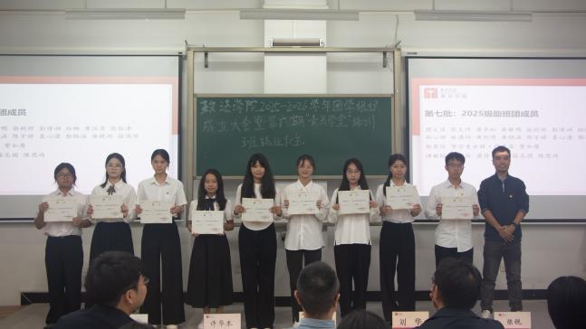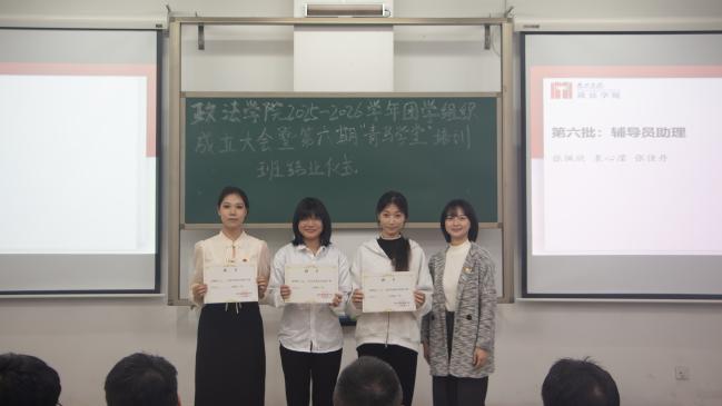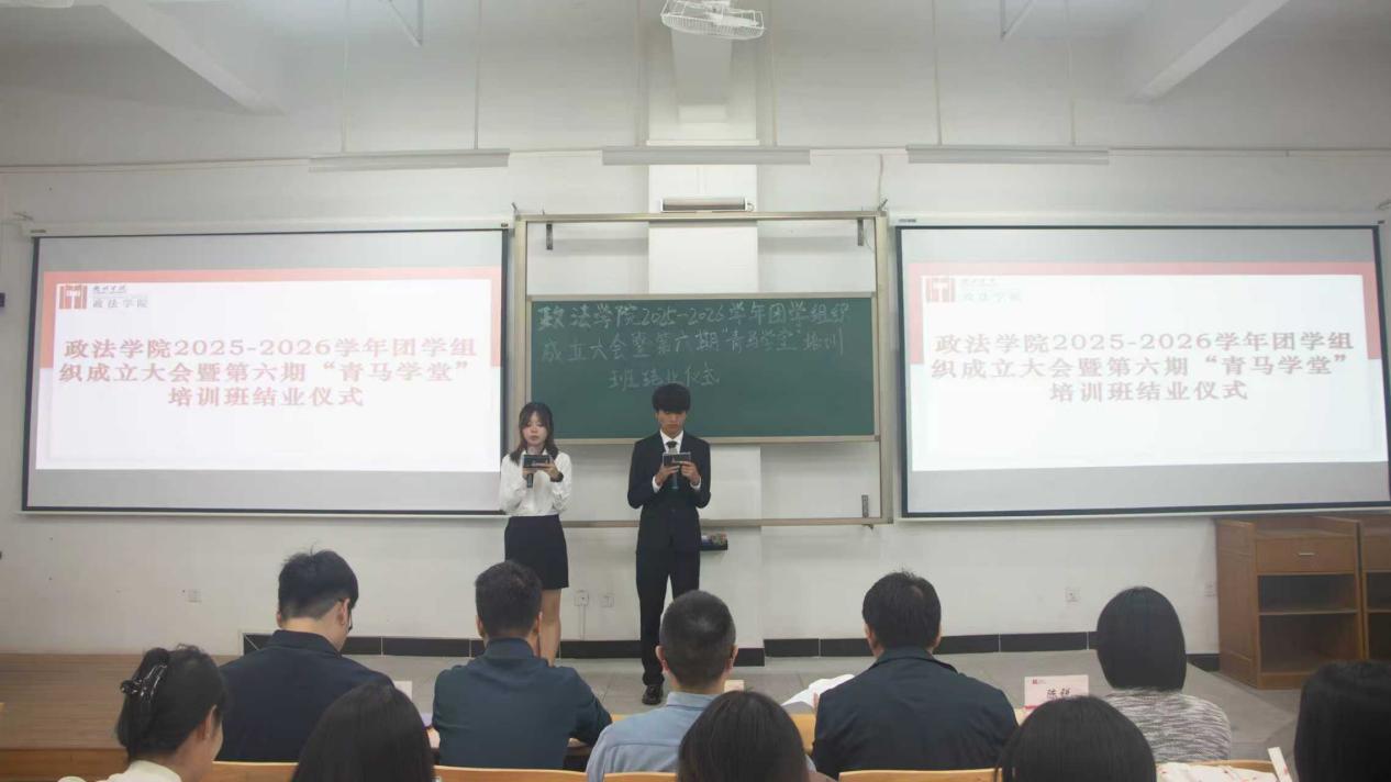在青春昂扬的团歌声中,政法学院2025-2026学年团学组织成立大会暨第六期“青马学堂”培训班结业仪式圆满落幕。