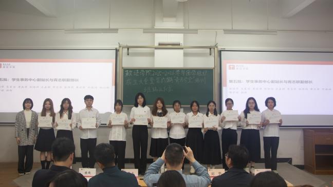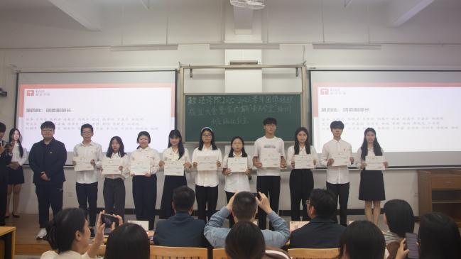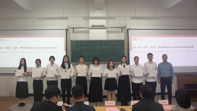曾蔚阳作总结讲话。他勉励同学们以更高标准要求自己,加强理论积累,提升政治素养,以强烈的使命感和责任感投入学习与工作。他寄语全体学生干部恪守初心使命,严守纪律,永葆工作热情,赢得同学们的广泛支持。