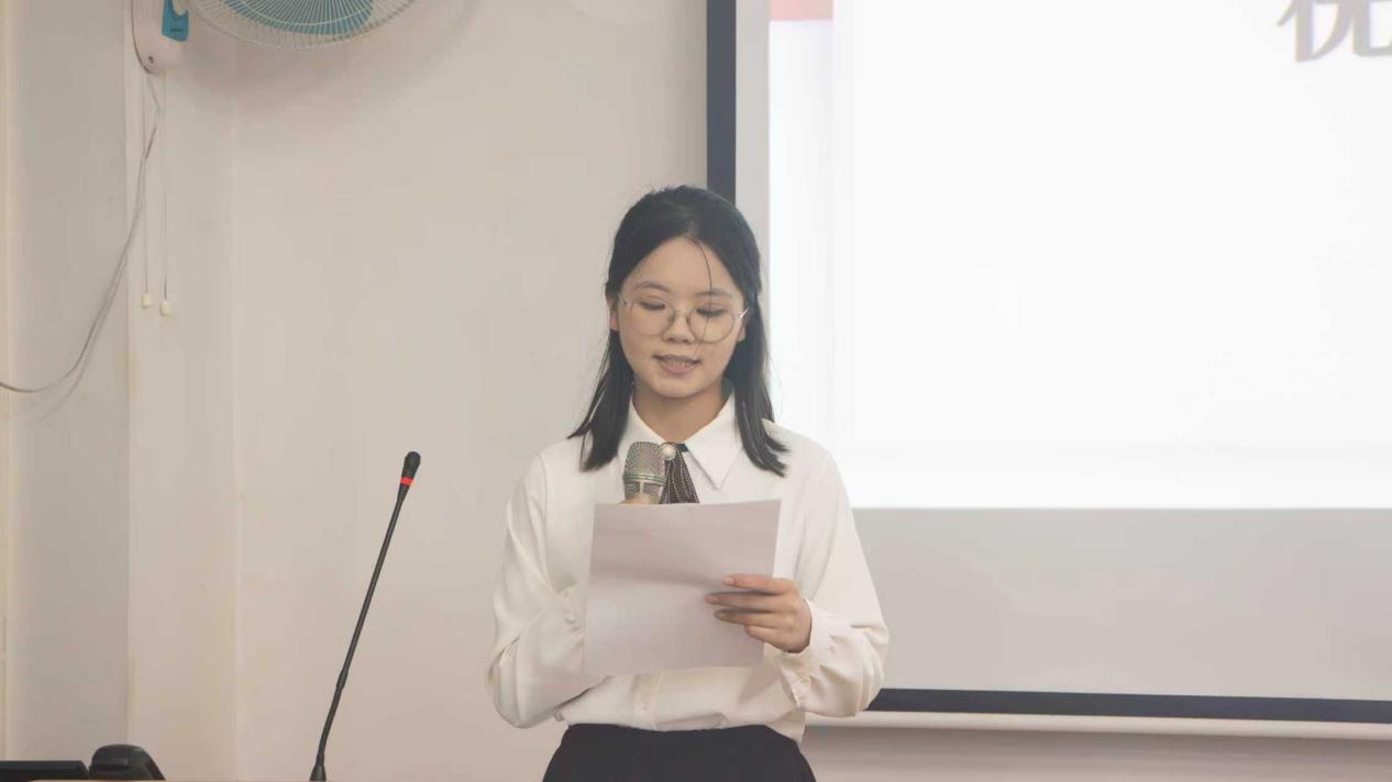 王琪作为优秀学员代表发言。她表达了对“青马学堂”一年来培养的由衷感谢,并分享了“用心比经验更重要”这一深刻感悟。她表示,这句话如同一盏明灯,不仅在学习上提醒她踏实勤勉,也在生活中激励她以真诚和热忱服务同学。