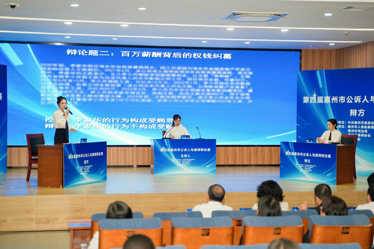10月31日下午,第四届惠州市公诉人与律师辩论赛在我校举行。赛事由惠州市委政法委指导,惠州市人民检察院、市司法局、市律师协会联合主办,我校协办。市检察院、市司法局、市律协、律师事务所相关领导及我校政法学院师生共300余人现场观赛。