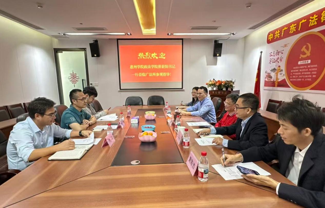 2025年10月30日上午,党委书记曾蔚阳、党委副书记刘华及辅导员陈曦,赴广东广发律师事务所开展访企拓岗并进行了校友座谈交流。广东广法律师事务所党支部书记、律所主任吴建伟,执行主任余周德律师、副主任吴育辉律师、金融与保险法律事务部主任黄陈杰律师、汤冬虹律师等人参加了座谈会。