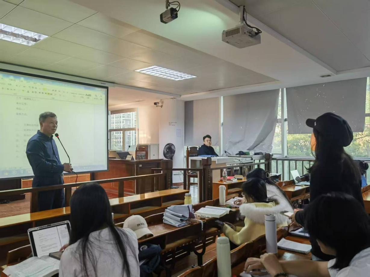 2025年11月26日下午,政法学院在模拟法庭实验室课室开展《民法分论》嵌入式课程教学活动,由我校兼职教授、广东人为律师事务所主任、高级合伙人欧阳俊胜律师主讲,《民法分论》课程教师危兆宾担任主持,24级法学专业1、2班全体同学参加。