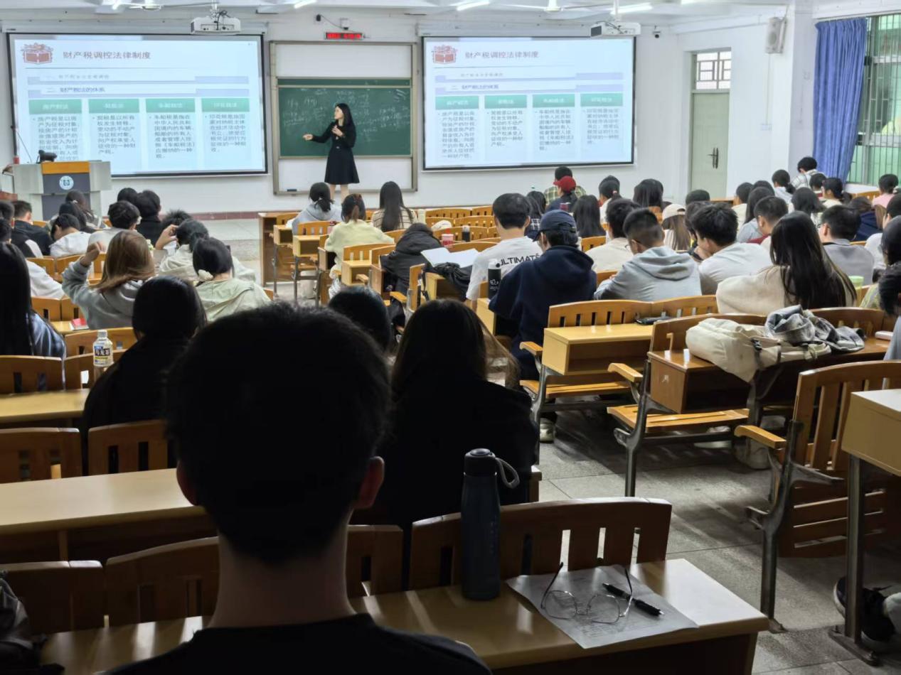 2025年11月28日下午,政法学院法律系于田家炳大楼202室开展嵌入式教学。应惠州学院政法学院的邀请,惠州市安达信财务咨询公司创始人、高级管理会计师、税务师陈秀玲女士,为24级法学本科生183人开讲税法讲座课。陈秀玲以为广东2000多家企业的财务、税务咨询筹划的实战经验为基础,以理论结合实战案例的授课方式,为学生讲述税收体制、商品税法、所有税法、财产税法,以及税收征权管理等法律制度,重点分析法学生将来从事的主要职业(律师和法务)应该掌握的基本税法理论和实务能力,鼓励学生多学习财务税务知识,提高法律服务能力,更好为国家和社会做贡献,也为自己创造美好生活打下坚实基础。嵌入式教学,实践了产学研的结合,丰富了学生的实践经验,校外名师娴熟又富有创意的讲述,给在校学生带来知识盛宴,受到老师和学生的一致好评。