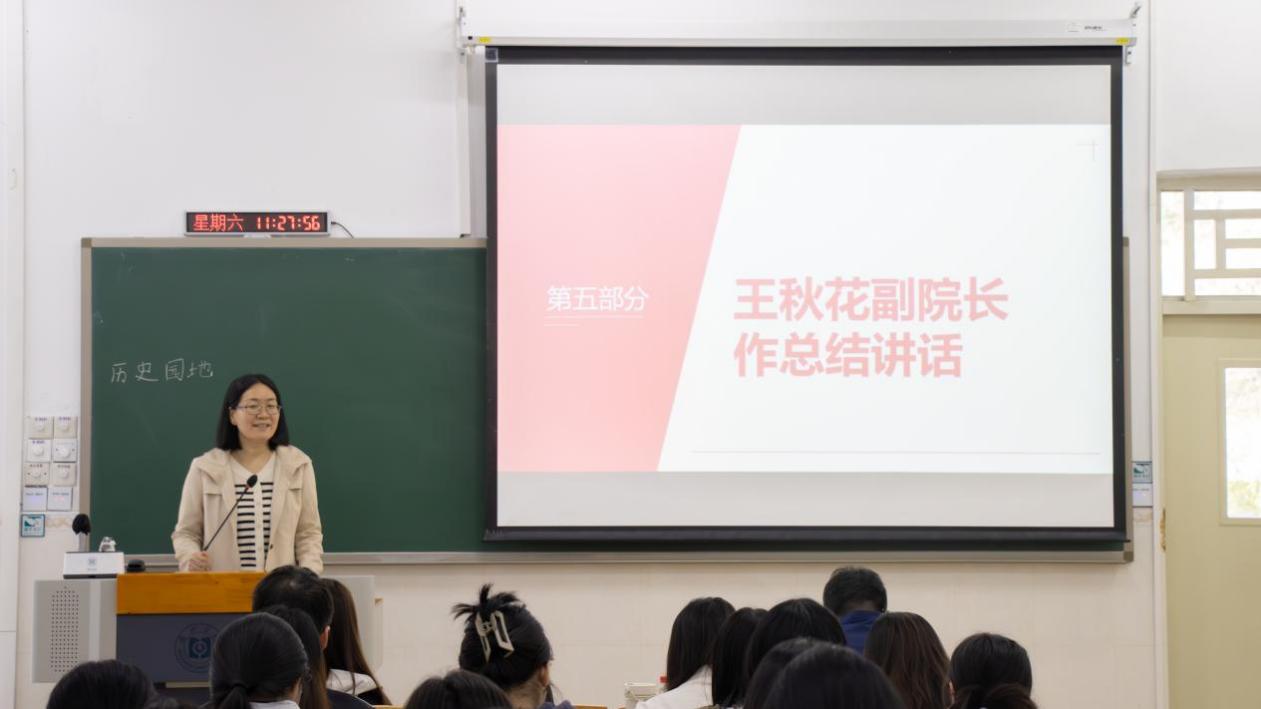 最后,王秋花作总结讲话,她指出:此次活动既是新老学子跨越年级的专业对话,更是师者精神的薪火相传。校友们带着对母校的深情,结合自身求学经历与职业实践,毫无保留地分享专业学习、师范生技能打磨与职业规划的宝贵经验,为在校学子点亮了学业深耕与职业发展的明灯,让“传道授业”的初心在代际传承中愈发坚定。