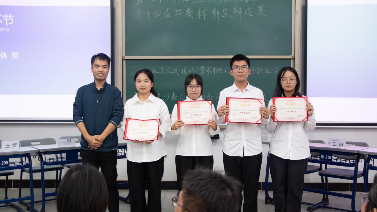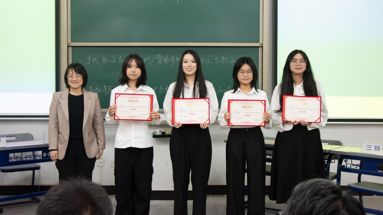 赛后,评委对选手表现进行点评并举行颁奖仪式。梁晓蕾对比双方辩论内容,复盘交锋过程;叶婉琳就论点深化、时间掌控、辩论礼仪等方面提出中肯建议。经评审,最终评选出一等奖“和评委一队”、二等奖“言值即正义队”、三等奖“重生之我在辩论队”、优秀团体“四个都队”以及最佳辩手潘豫。