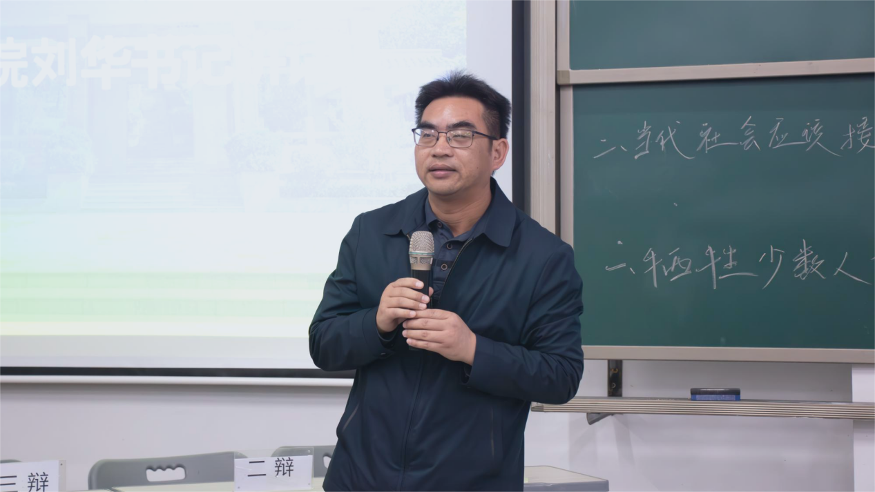 最后,刘华作总结讲话,向获奖选手表示祝贺,并对工作人员及华商律师事务所的支持致以感谢。他指出,本次比赛见证了选手从初赛到决赛的成长蜕变,充分展现了学院举办辩论赛的意义与价值,并呼吁同学们积极为社会贡献青春力量。