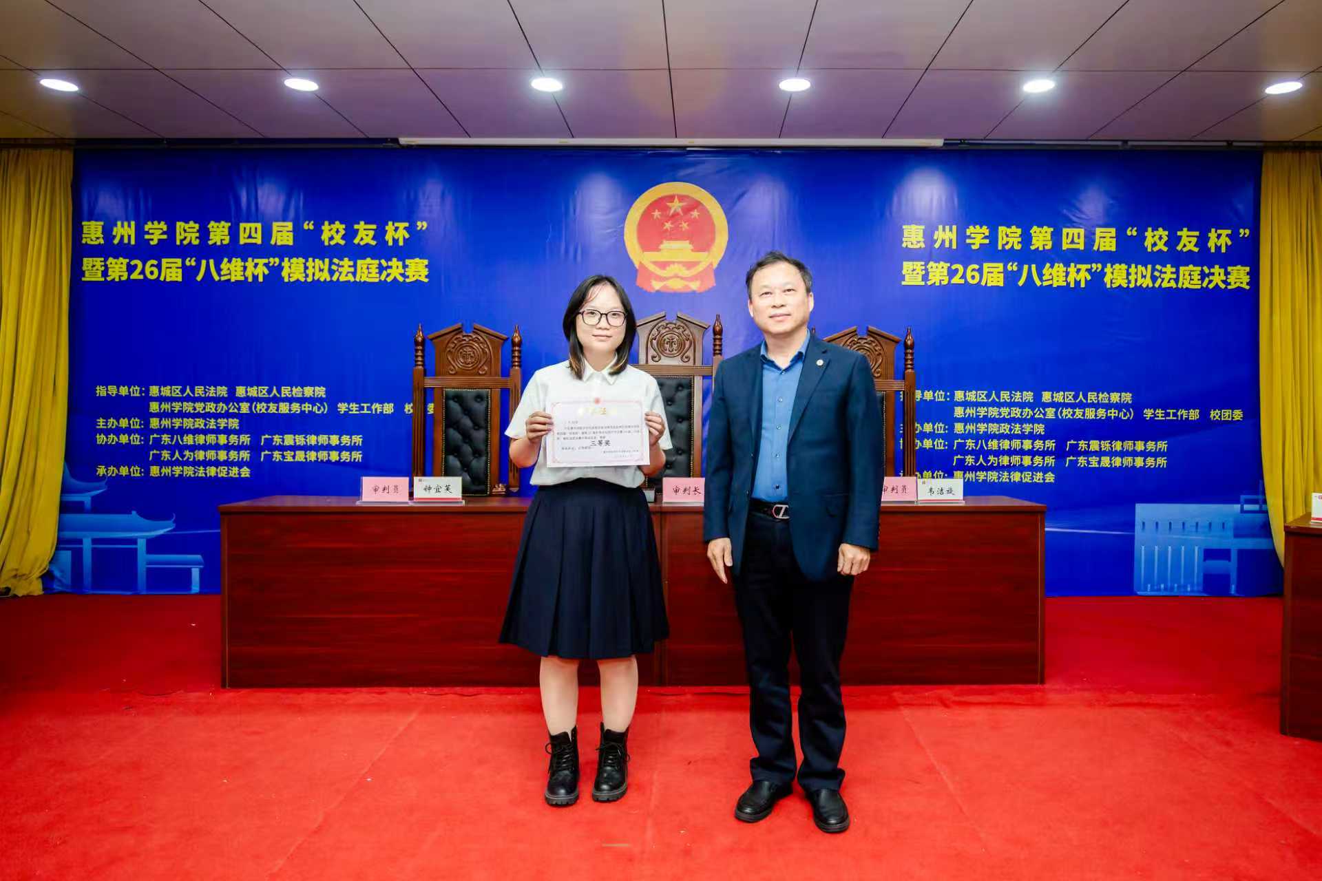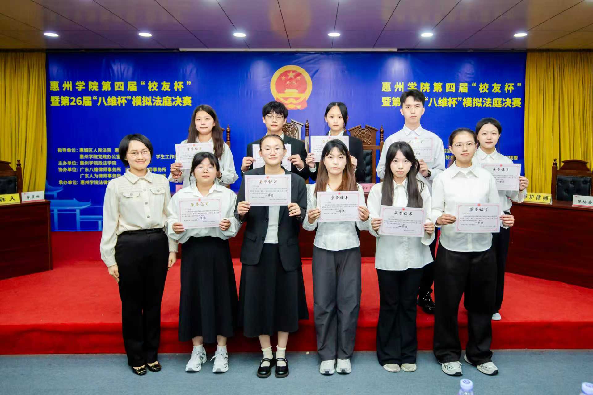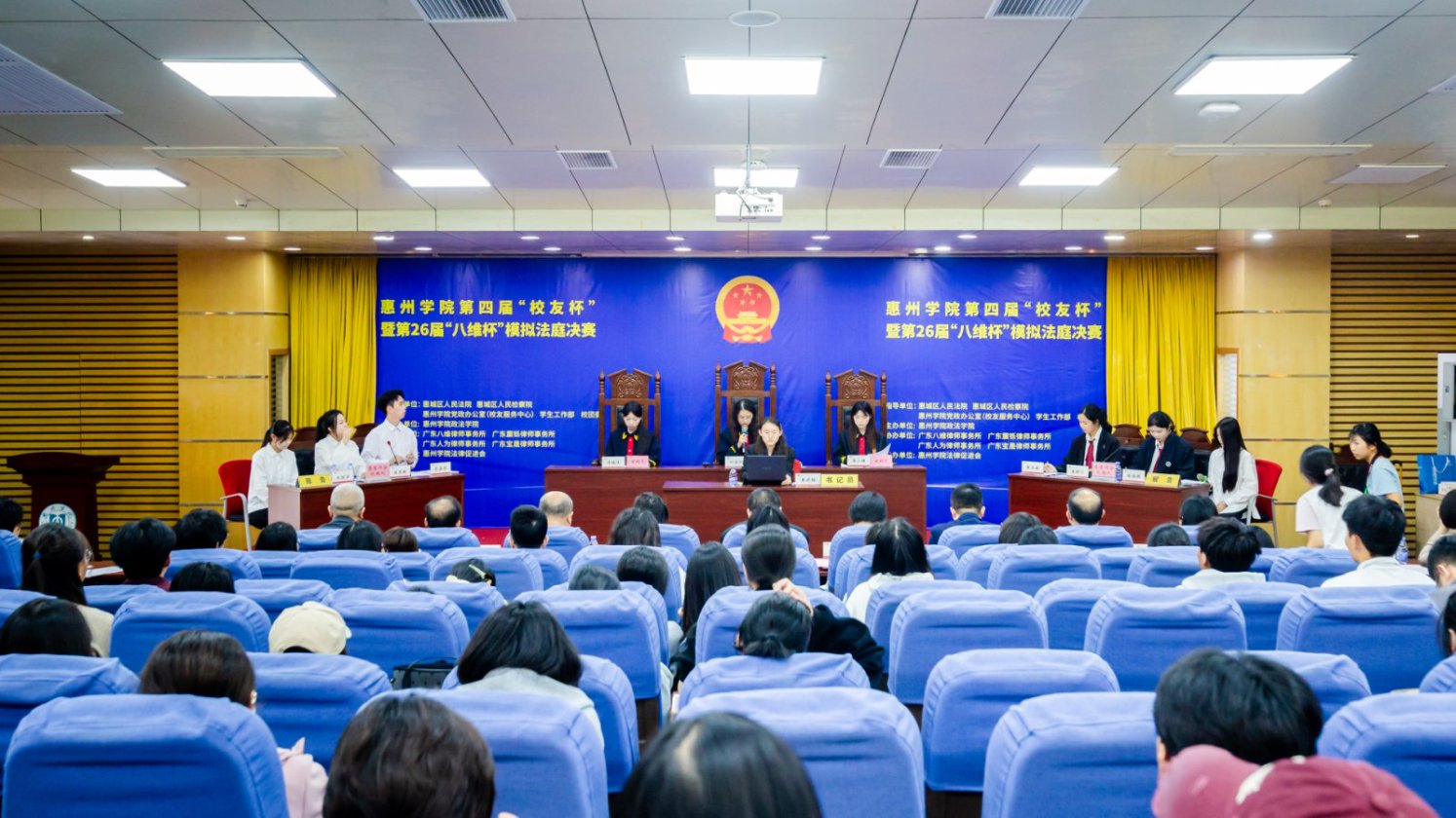 2025年12月10日下午,惠州学院政法学院在图书馆学术报告厅举办惠州学院第四届“校友杯”暨第26届“八维杯”模拟法庭决赛。