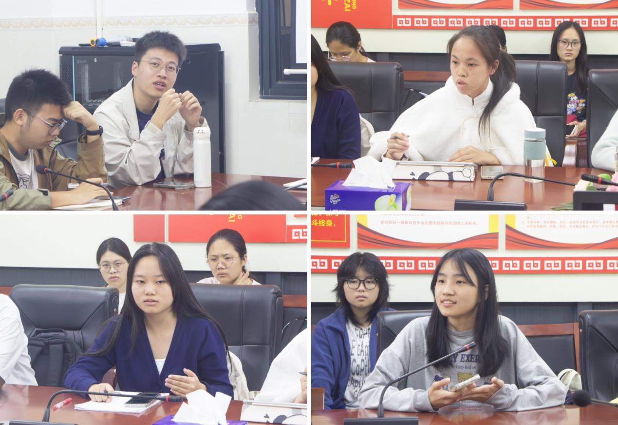 学生代表结合个人学习体会,逐一发言交流。同学们普遍认为,本学期教学工作开展扎实、成效显著。专业课教师注重结合案例与司法实践讲解法律条文,有效激发了学习兴趣;模拟法庭、法律文书竞赛等活动促进了理论与实践融合;课后答疑与学业辅导等工作体现了教师的负责与关爱。代表们还围绕课程安排、实习实践、生活服务等方面提出建议,包括优化课程时间分布、增加实务单位见习机会、完善餐饮配送服务、加快宿舍设施维修响应等。