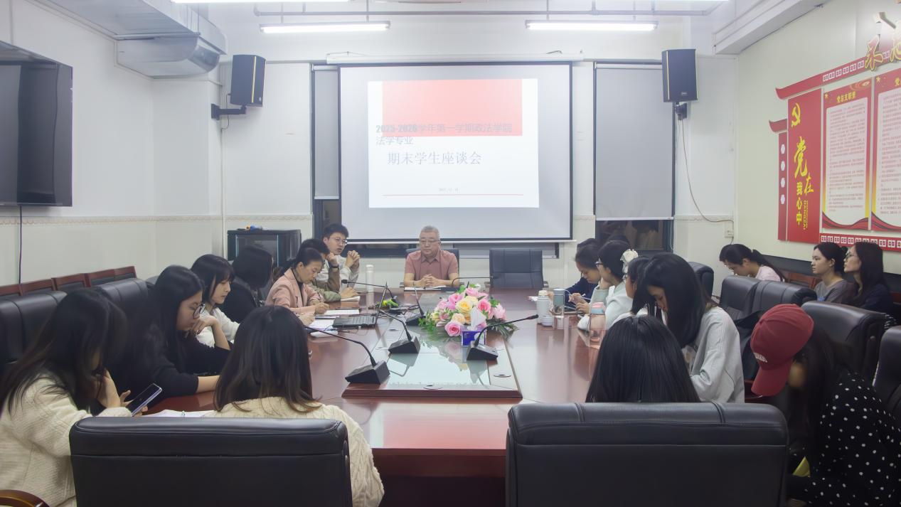 为全面了解本学期教学情况、及时听取学生意见建议,不断优化人才培养工作,政法学院法律系于2025年12月18日在旭日科技大楼B座1608会议室召开2025-2026学年第一学期期末教学检查学生座谈会。政法学院党委书记、院长蒋炜,法律系教师陈新华、邓芳,辅导员陈锐及各年级学生代表参加座谈。