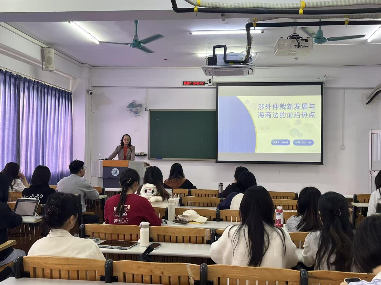 2025年11月15日上午,惠州仲裁委员会主任曾红艳应政法学院邀请在旭日楼204开展“涉外仲裁新发展与海商法”专题讲座,政法学院院长蒋炜,法律系主任黄明慧,法律系教师李铁喜副教授、丘川颖、张俊雅,以及涉外法治微专业学生参加。
