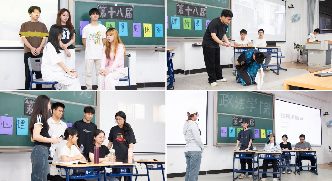 为进一步加强学生心理健康教育,丰富校园文化生活,引导学生关注自身心理健康、提升心理调适能力,2026年4月2日,政法学院“心沐阳光·政向前行”第十八届心理情景剧比赛在旭日教学大楼118教室举行。