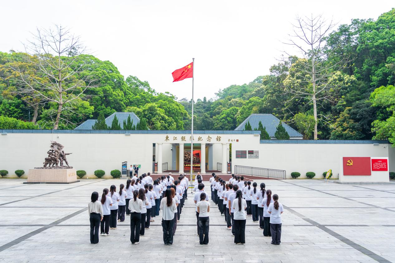 4月3日上午,我校在东江纵队纪念馆(惠州)举办2026年“我们的节日·清明”祭奠革命先烈暨爱国主义教育活动,主题为“传承先烈志 共筑强国梦”。本次活动由学校宣传统战部、学生工作部、校团委、校工会及政法学院承办,近百名师生代表参加。活动在庄严的国歌声中开始,宣传统战部负责人致辞勉励师生传承英烈精神。东江纵队后人黄克南讲述了先辈的英雄事迹。全体人员齐诵红色诗歌《英雄剑——写给东江纵队》,在革命烈士塑像前默哀献花,并参观纪念馆。随后,师生在罗浮山“党建小道”上了一堂沉浸式“行走的思政课”。