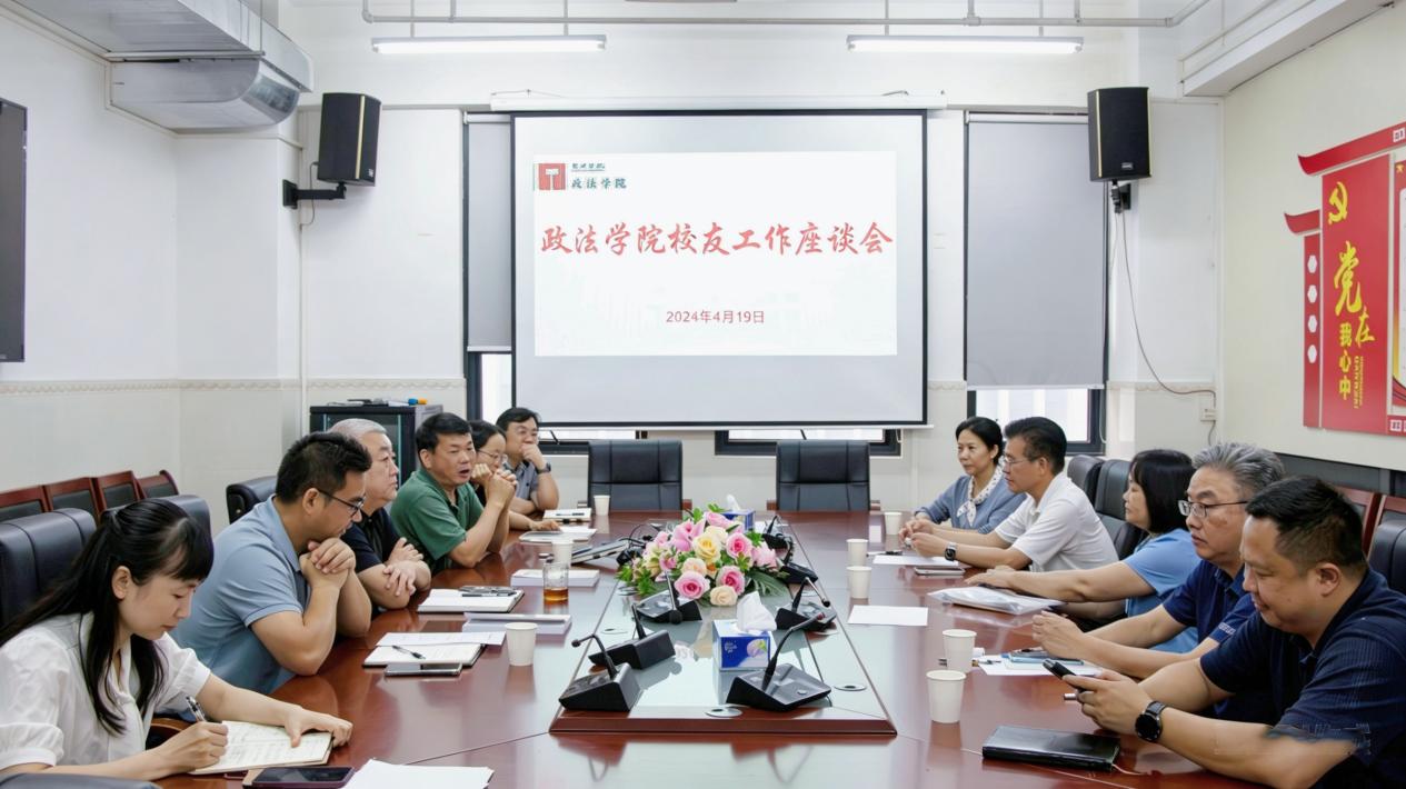 2026年4月15日,政法学院在旭日科技大楼B座1608会议室召开校友工作座谈会。学院领导班子、历任老领导、师生校友代表齐聚一堂,围绕校友工作推进、八十周年校庆筹备及育人事业发展进行深入交流。